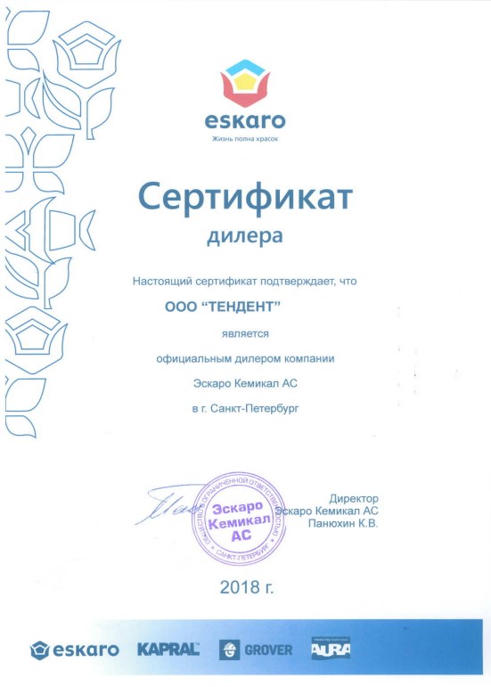 Дата получения  01.01.2018 Сертификат дилера ЭСКАРО